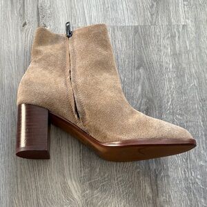 Step out in style with these chic tan suede ankle boots. Perfect for any occasion, they offer both comfort and elegance. Never worn.