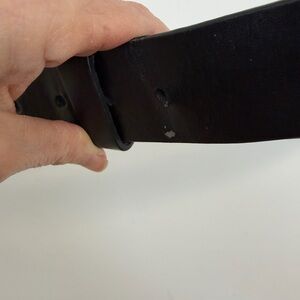 Sleek black and silver belt with a rugged silver buckle. Ideal for versatile styling.