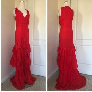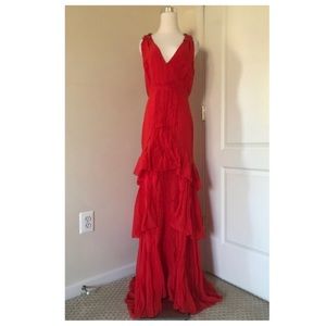 Elegant silk dress with layered ruffles.