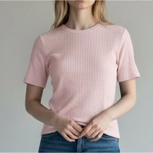 PINK Victoria's Secret Ribbed Knit T Shirt Blush Pink Short Sleeve Size XS