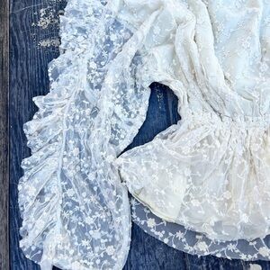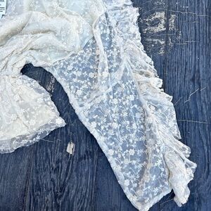 Brand new with tags. Gorgeous blouse with ruffled sleeves(see thru lace).