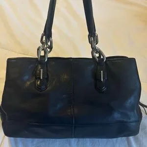 This soft, buttery, black leather handbag is perfect for any occasion. Its sleek design and high-quality material make it a must-have accessory. In gentle, pre-loved condition. In excellent condition. No scratches . Minimal to no wear in corner edges of bottom of bag. Interior in great condition. Pockets , pockets ‘n more pockets. Pocket for cell phone, keys, fav lipstick!