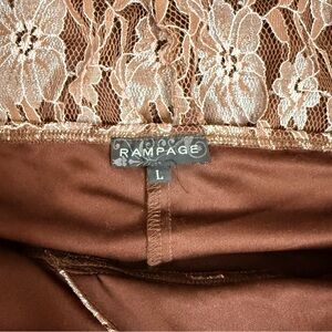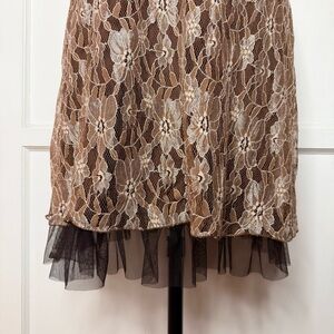 Rampage brown lace halter midi dress with mesh tulle layer underneath. Size L.
