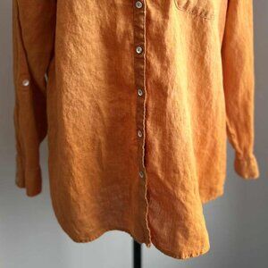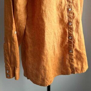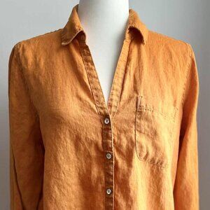 Sigrid Olsen Pumpkin Orange Pure Linen Button-Front Shirt w/ Sleeve Tabs – US M