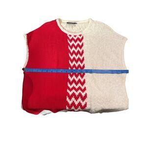 Vintage Haberdashery by Personal II 1970s Red White Sweater Vest Knit Zig Zag Designer Custom Plus Size Cotton