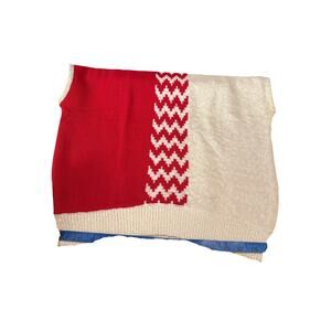 Vintage Knit Red White Geometric Coogi Like Designer 1980s 70s Sweater Vest