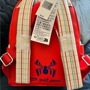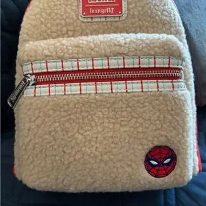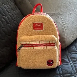 Marvel backpack with tan fleece and red accents. Features Spider-Man patch and front zipper pocket. Side packet. One large opening. Great for any Spidy Fan!!!