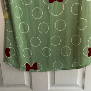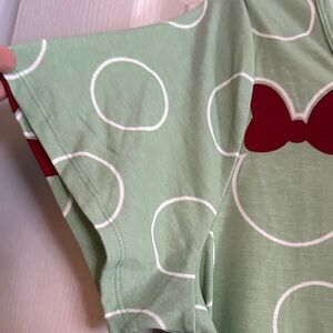Charming green tee with red bow accents. Features playful circle pattern. Ideal for casual wear. Perfect for that Disney Trip. Smoke free home.