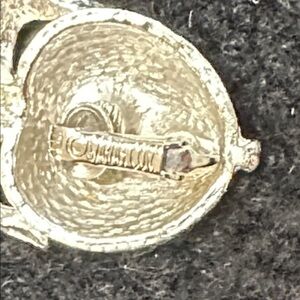 This Sarah Coventry 1961 Adam’s Delight Brooch & Earring set is in excellent condition. The face of the pieces are textured with shiny silver on the under leaves & clips. The pin & the clips work well. The brooch is 2 1/4” x 1 3/4”. The clip earrings are 1 1/2” x 1”. Bundle & save!