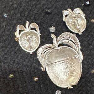 Sarah Coventry Silver Adam’s Delight 1961 Apple Vintage Brooch & Clip Earrings