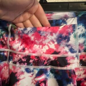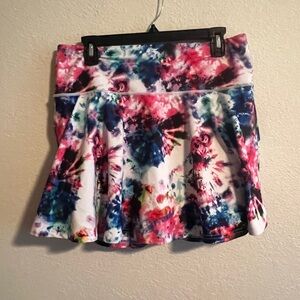 Pink, blue and green tie-dye print skort. White shorts underneath with size packets. Zipper pocket on back of dress. Gently used size xl.
