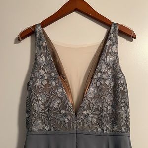 Elegant blue maxi dress by Jenny Yoo. Features a lace bodice and flowing skirt. Perfect for formal/semi formal occasions. I wore this for a wedding in December after purchasing here. Has been freshly dry cleaned and is ready for its new closet!