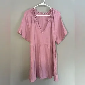Old Navy Split Neck Crinkle Gauze Mini Swing Dress