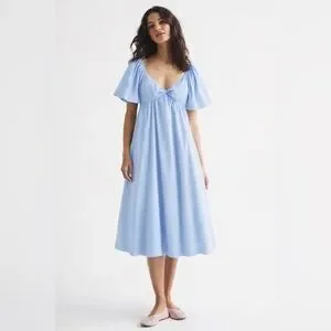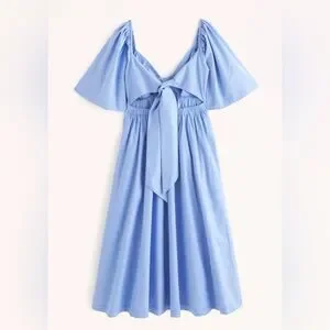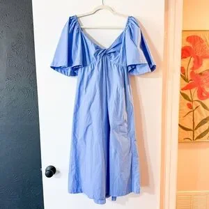 Abercrombie & Fitch Angel Sleeve Twist Front Midi Dress Blue Size Medium Petite