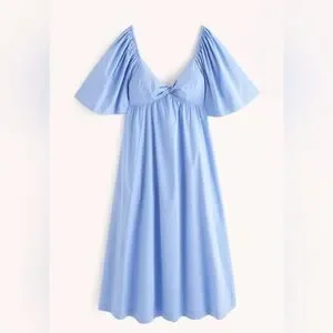 Abercrombie & Fitch Angel Sleeve Twist Front Midi Dress Blue