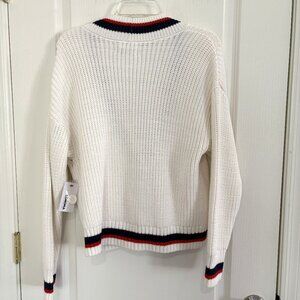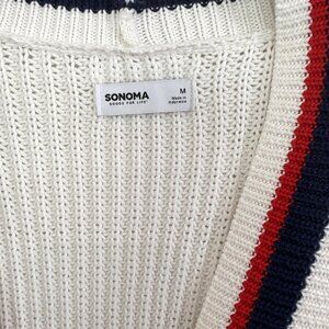NEW Sonoma Button Front Pocket Cardigan Sweater Ivory with Red & Blue Trim Size Medium NWT