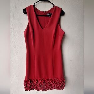 Donna Ricco Red Zipper back closure Scuba Sleeveless Ruffle Hem Women's Mini Dress Size 12