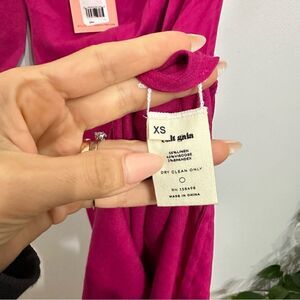 Stand out at your next event in this elegant linen-blend gown featuring an elegant one-shoulder neck and a stunning side slit for added movement. From Cult Gaia, summer 2021, gorgeous fuchsia color.