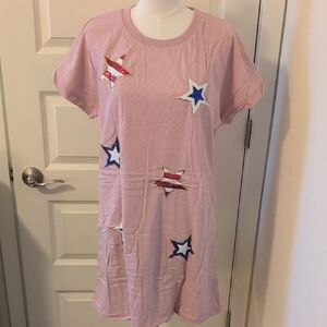 FOR G AND PL Dress Short Sleeve Crewneck Pink with Sequined Stars Size Large