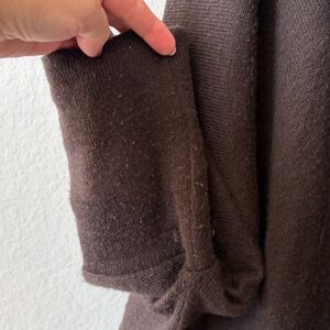 Pete & Greta by Johnny Was Dark Brown Lagenlook Open Front Dollman Sleeve Hooded Cardigan Sweater. Washed out terry. Size Small. Good pre-owned condition with this sweater is meant to appear “worn” so there is peeling, and some threading appearing white, this is the style of this cardigan. Peeling on sleeves as shown in pictures from wear. Slash pockets. I recently had it dry cleaned. Smoke free home. Weighs 2 lbs for shipping.