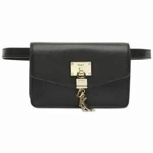 DKNY Black Leather Belt Bag with Gold Accents