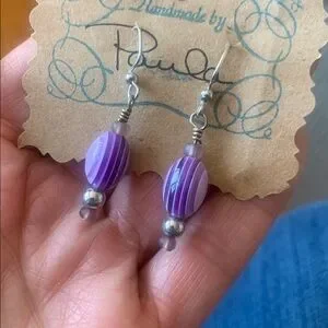 Discover the charm of 's handmade earrings, featuring stunning purple beads. A perfect accessory to enhance your style.