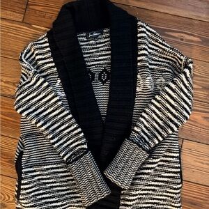 Chic black and white striped cardigan. Perfect for layering. This is a Sam Edelman black and white striped wool-alpaca blend open-front cardigan with a shawl collar