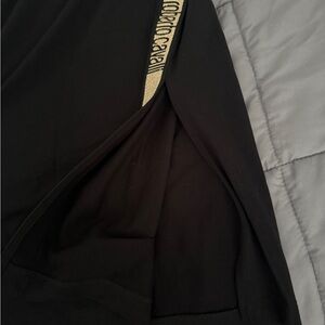 Chic black skirt with signature gold logo detail. Ideal for stylish outings.