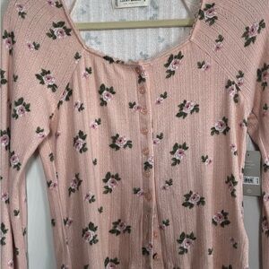 NWT Lucky Brand Pointelle Floral Pink Long Sleeve Button Up Cottagecore Shirt