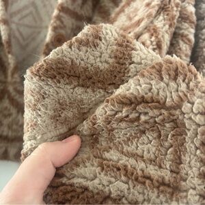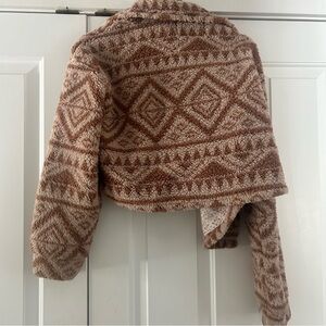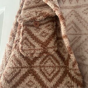 Chic and warm teddy jacket. Features a stylish pattern. Ideal for cool weather. Does have some wear. Please see photos.