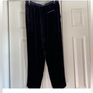 EUC Eileen Fisher blue velvet pants. Elastic satin waist, satin side pockets, one slit back pocket. Very comfortable to dress up or down.