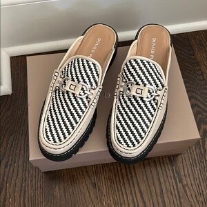 Elevate your look with these stylish slip-ons. Black and cream pattern adds a modern touch. Ideal for versatile wear.