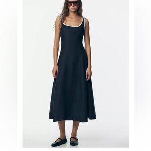 ZARA CONTRAST PIPING LINEN MIDI DRESS