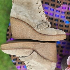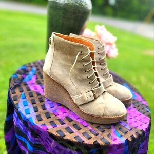 Madewell Suede Lace Up WEDGE Booties MONK strap Buckle 3.5" HEIGHT SZ 9.5