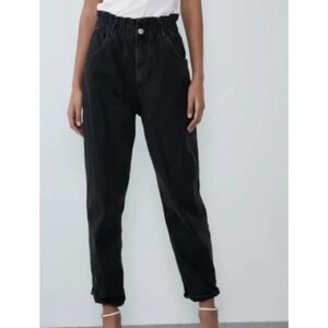 Stylish high-waisted jeans. Elastic waistband. Classic black color. Perfect for casual wear.