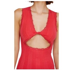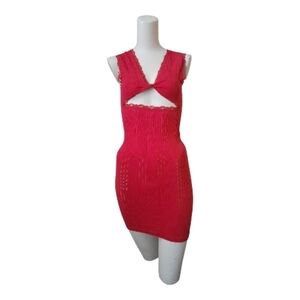 Vibrant red knit dress featuring a chic cutout design. Perfect for evenings out.