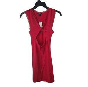Nasty Gal Red Lace Trim Eyelet Cut Out Mini Dress M/L / Valentine's Day