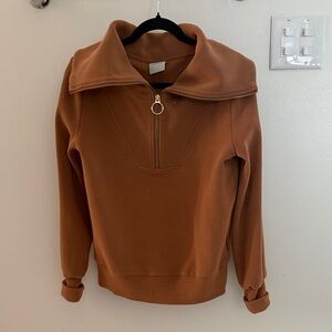 Varley Tan Zip-Up Cowl Neck Sweatshirt
