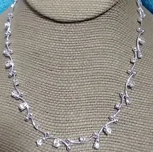 Elegant Silvertone Crystals Wavy Necklace with Crystal Accents vintage