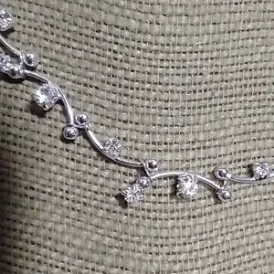 This elegant silver necklace features sparkling crystal accents, perfect for any occasion. Its timeless design adds a touch of sophistication to your look.