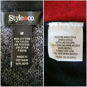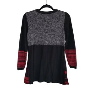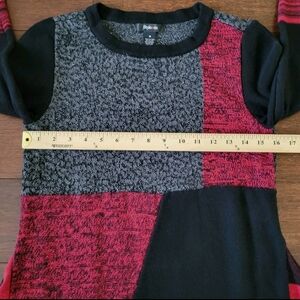 Style & Co Women's Knit Boho Patchwork A-Line Tunic Top Size M Red Black Silver