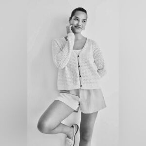 An open-stitched cotton cardigan sweater with a just-right cropped fit. Featuring a V-neckline and buttons along the front, it's made to go with high-waisted jeans.