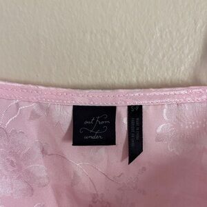 Elegant blush satin camisole with floral design. Soft and stylish.