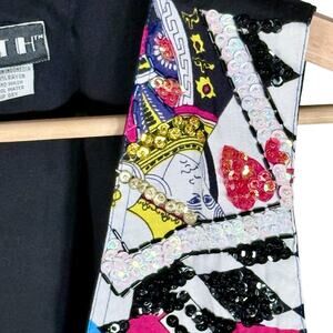 Faith VTG Women's Small Sequined Playing Card Lightweight Button Front Vest
