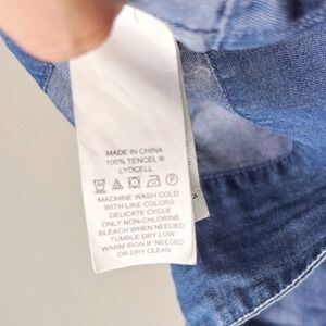 Made from 100% TENCEL™, a sustainable, eco-friendly fabric derived from recycled wood pulp, this top is soft, breathable, lightweight, and comfortable while still looking polished. The indigo dye gives it a classic denim look without the weight of denim, making it ideal for warm weather.