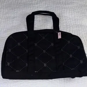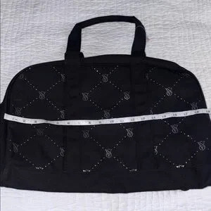 Victoria’s Secret large black weekender canvas bag with beautiful rhinestone detailing, zipper closure and 2 inside pockets. Perfect for any occasion, it combines elegance with functionality.
