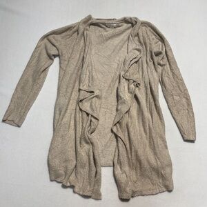 Soft and luxurious cardigan. Open front design. Ideal for layering. Versatile tan color.