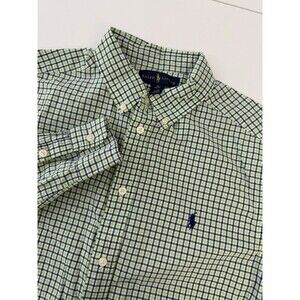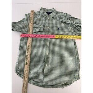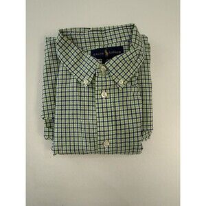 This Ralph Lauren shirt is a stylish and classic addition to any boy's wardrobe. The blue and green gingham pattern adds a pop of color to a traditional button-down style, perfect for casual wear or more formal occasions. The long sleeves and collared neckline give it a polished look, while the woven fabric ensures durability and quality. Designed in an XL size 18-20, this shirt is versatile and can be worn for various activities throughout the day.