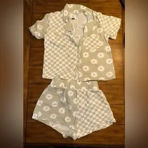 Super cute American Eagle pjs! Top and bottoms included. Top is size small and bottoms are XS (bottoms are a bit over sized in my opinion). Great condition.