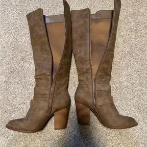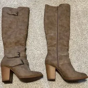 Knee high heel boots. Slight wear on the bottom. Buckles not broken